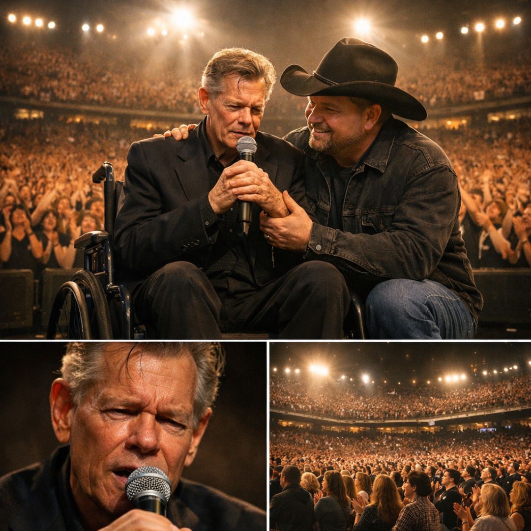 It was a massive stadium show, packed with nearly 80,000 people. Garth Brooks stood backstage, watching the crowd roar. But his eyes kept drifting to the wheelchair beside him. Randy Travis sat there quietly, dressed in black, hands folded together as if holding onto courage.