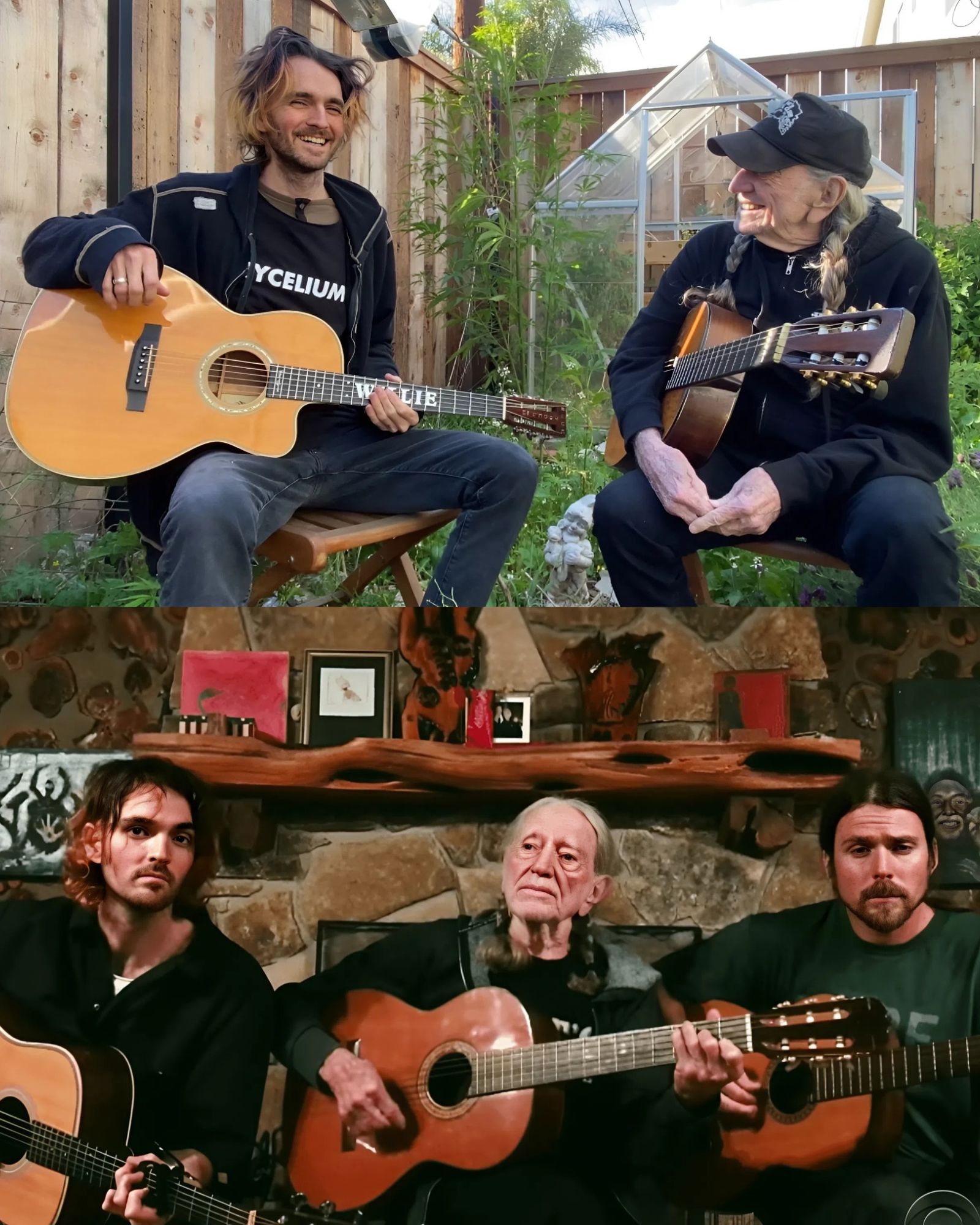 It’s dawn in Luck, Texas. The sun hasn’t quite broken through the mist, and somewhere on the Nelson family ranch, a familiar voice hums through the static of an old tape recorder. It’s Willie Nelson — 92 years old, fragile yet eternal — singing with his sons, Lukas and Micah. The track, long unreleased, surfaced this morning under a name that feels almost prophetic: “Heaven Is a Honky-Tonk.”