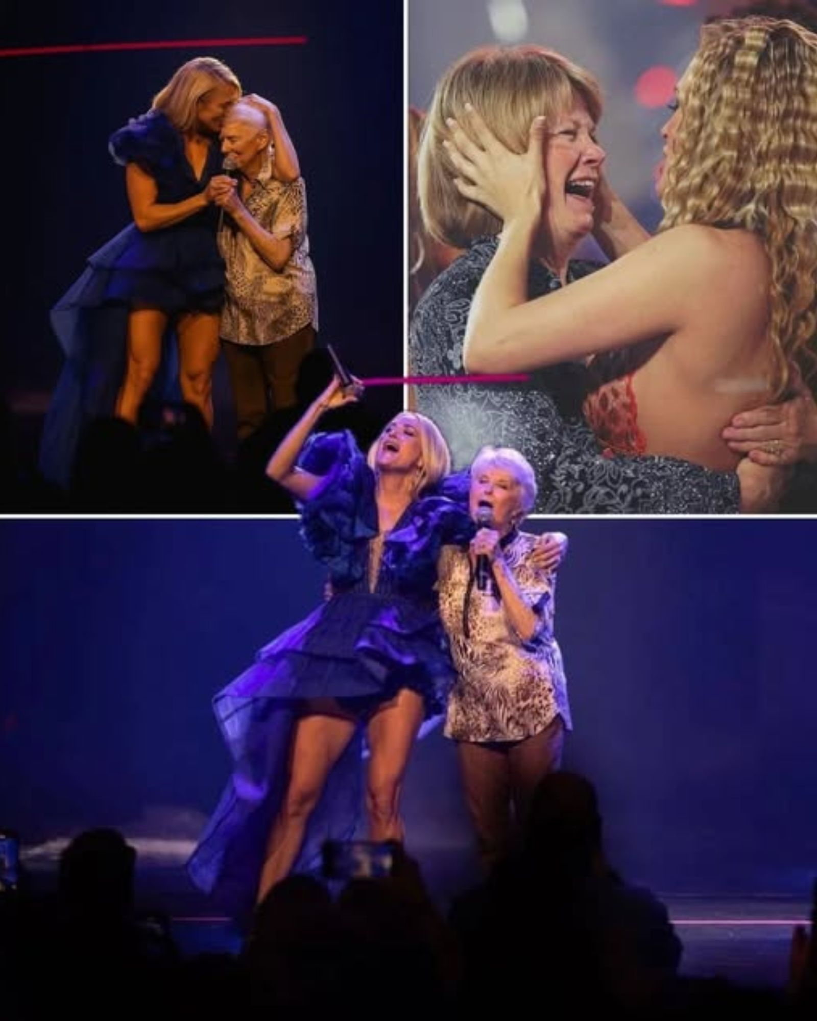 She launched into the familiar lyrics with powerful vocals, the crowd echoing each word back to her. Midway through the second verse, the stage lights shifted, the band’s tempo softened, and Carrie instinctively glanced toward stage right—only to freeze in disbelief.
