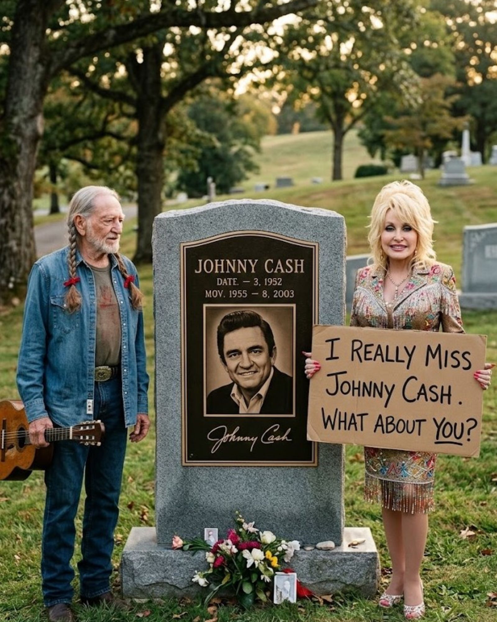 Dolly Parton and Willie Nelson Visit Johnny Cash’s Gravesite in a Quiet Tribute