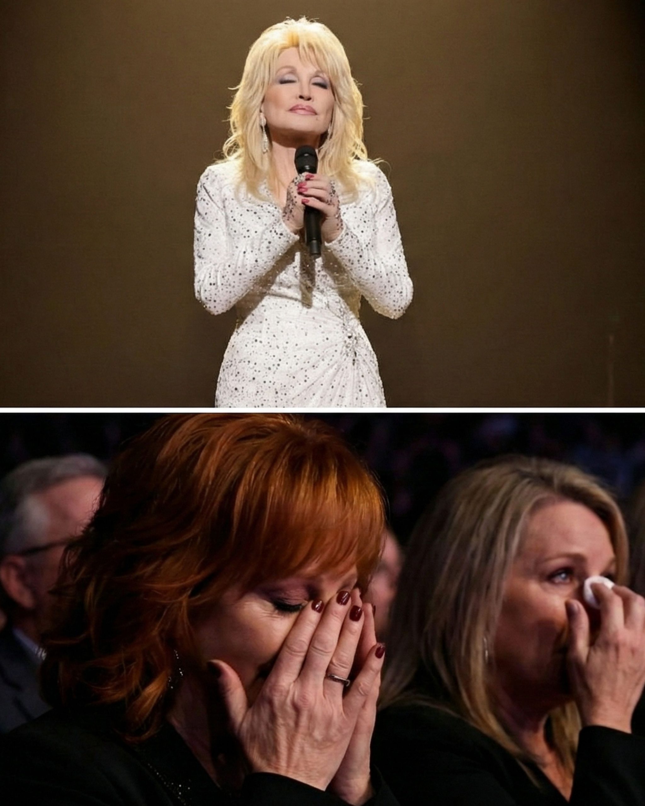 In the front row, Reba McEntire covered her face with both hands. Not for the cameras. Not for drama. Just the way people do when a memory hits too close, too fast.