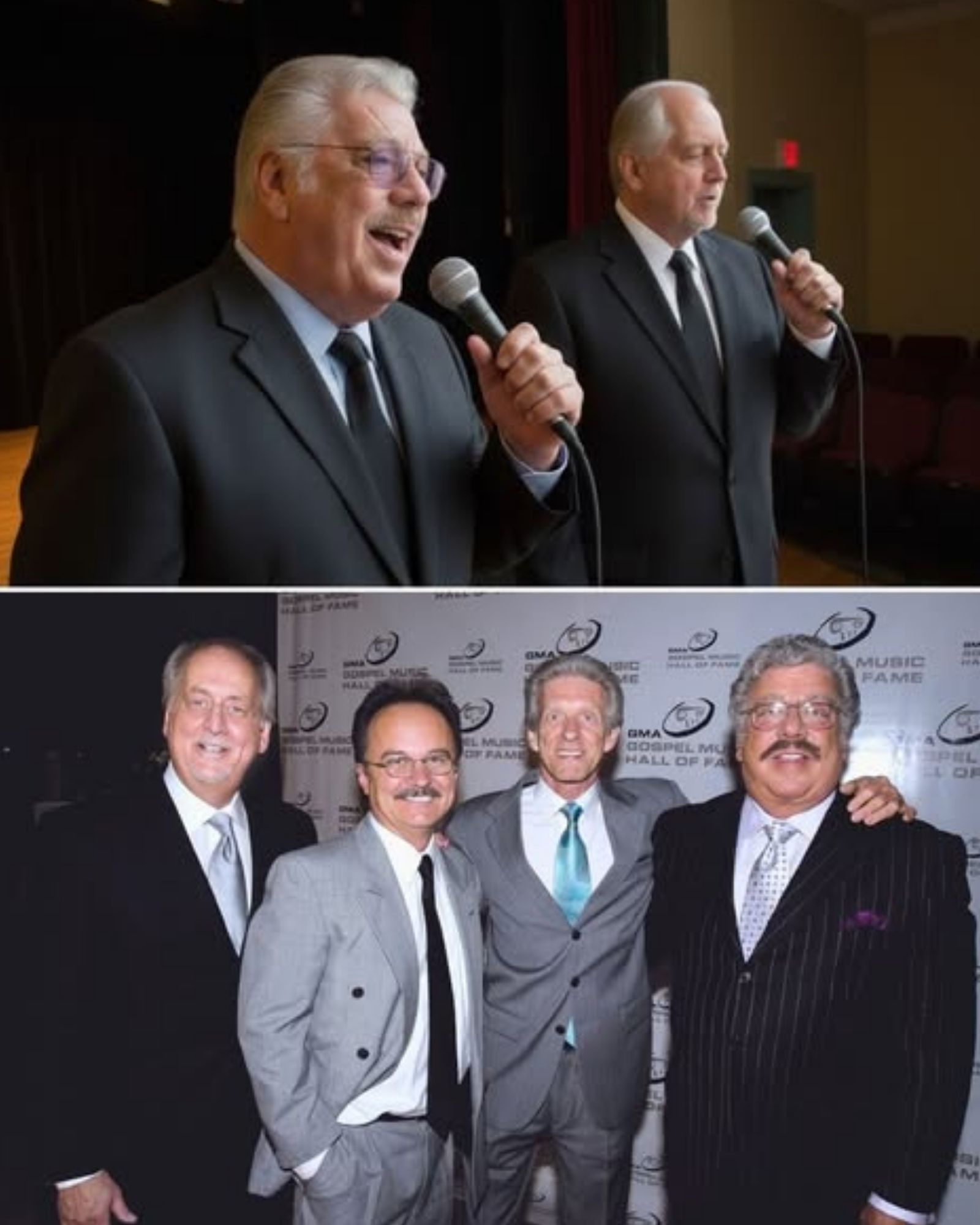 Don’s eyes are cast downward, steady and thoughtful, as if replaying the years rather than rehearsing a song. Phil, the group’s quiet anchor, stands a half-step back, his faint smile filled with peace. Harold, the heart of their humor and harmony, rests his hand gently on Jimmy’s shoulder — his wedding ring catching the light. And Jimmy, the youngest, the tenor who carried their harmony into a new generation, looks upward, eyes glistening, lips moving in a prayer only he could hear.