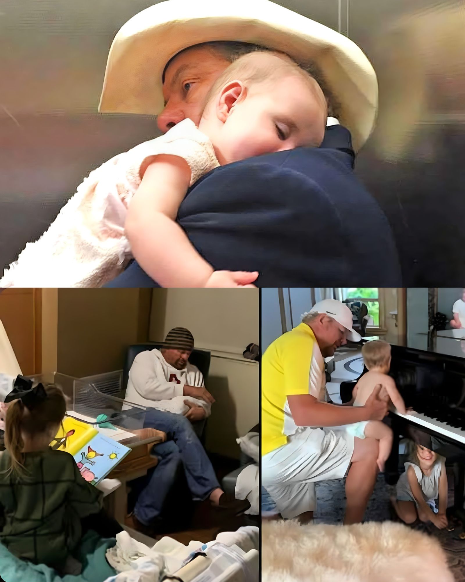 Unlike the electrifying performances that defined much of his public life, this video captures Toby Keith in a private family setting. Dressed casually and seated comfortably, he cradles one grandchild in his arms while another sits nearby, watching him with quiet attention.