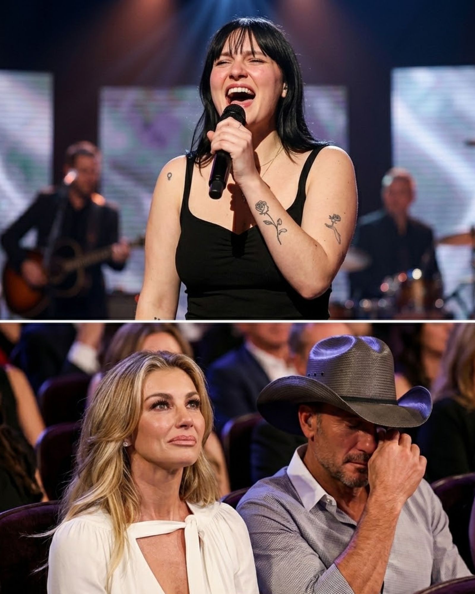 Sitting in the audience beside Faith Hill, Tim McGraw was not watching a rehearsal, not watching a family singalong, and not watching a child borrow confidence for one evening. Tim McGraw was watching Gracie McGraw take ownership of a room on her own terms. By the first chorus, the emotion had become too much to hide. The man who had spent years bringing huge audiences to their feet was wiping tears from his eyes.