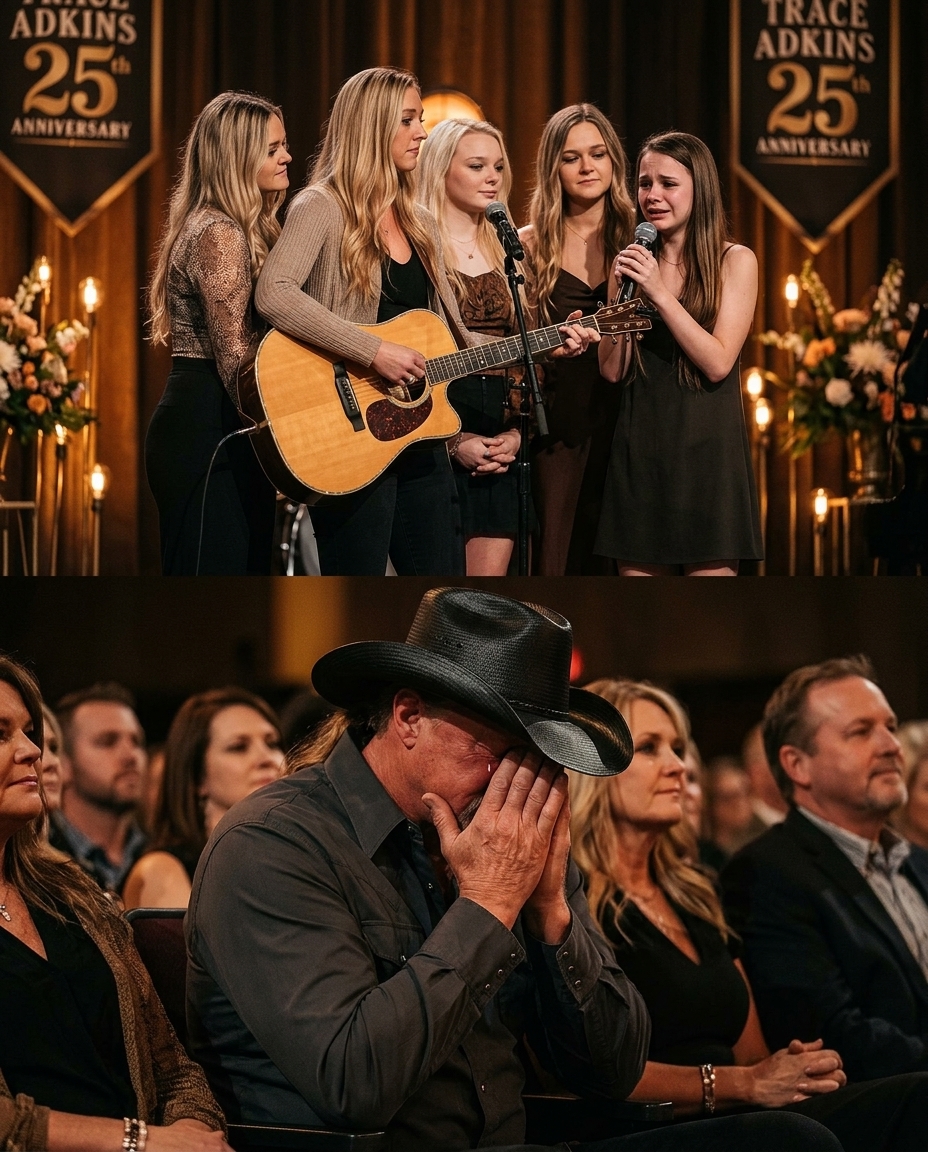 What remains is the image: Trace Adkins, a man long defined by toughness, standing still while his daughters sang the truth back to him. In that room, the strongest thing Trace Adkins did was not hold the tears in. It was letting them fall.