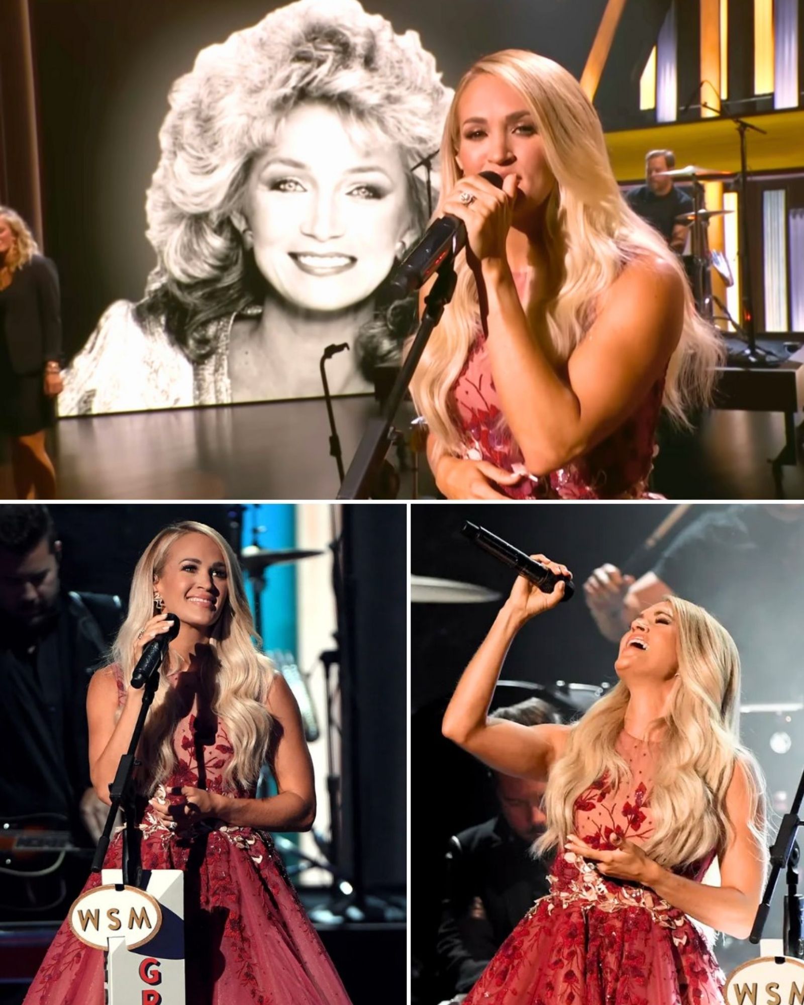 Then, under the soft golden glow of the spotlight, Carrie Underwood stepped forward. The stage was hers, yet in that instant, it felt like she was sharing it with ghosts. From the first shimmering chord, something changed in the air. Her voice didn’t just echo — it awakened.